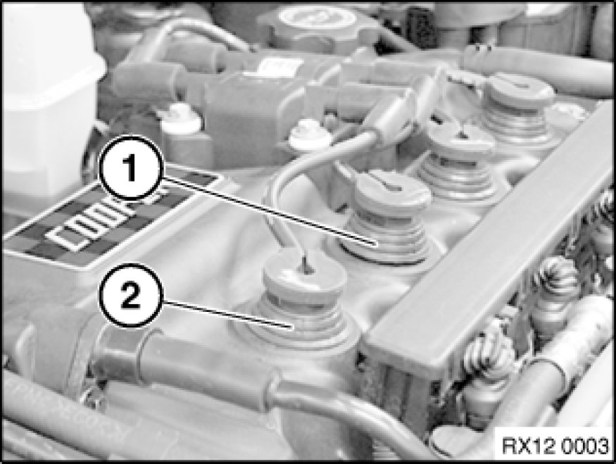 Incorrectly installed ignition cable (1) and correctly installed ignition cable (2).