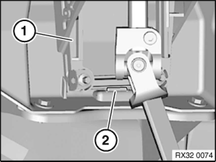 A felt strip measuring 15x50 mm must be stuck onto the new steering column (1) in area (2).