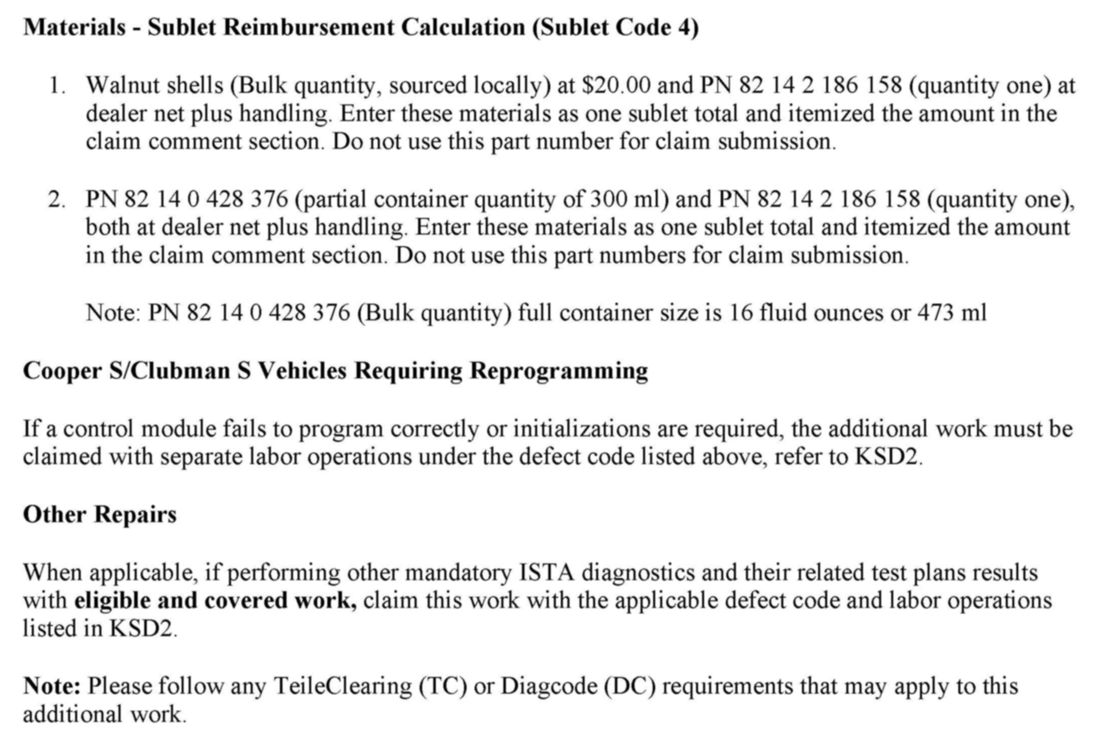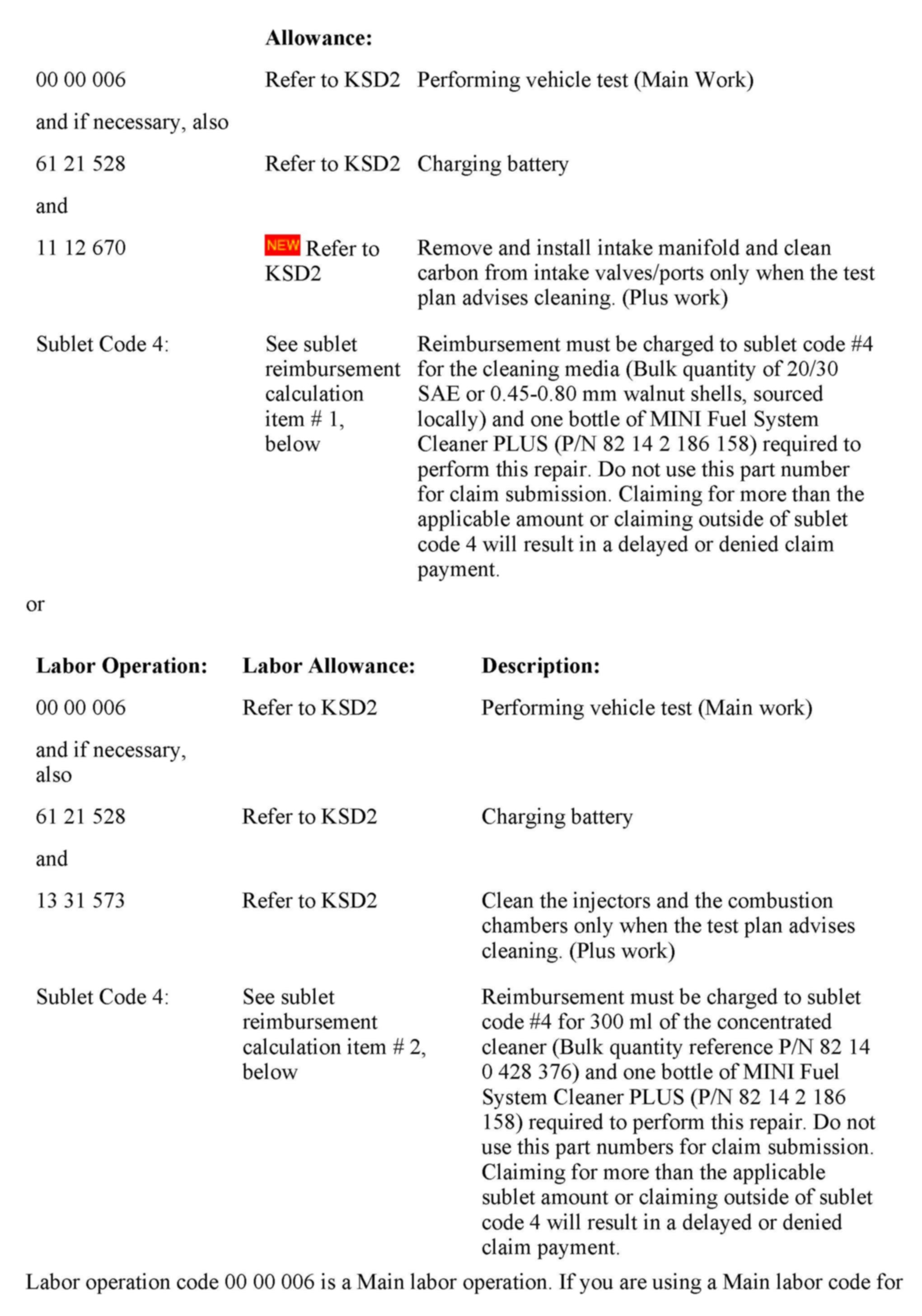 The fluids and tools described in this Service Information bulletin are the only MINI approved items that can be used to clean the fuel injection system and combustion chamber. Using non-approved fluids or tools can lead to premature component failure and will not be covered under Warranty.
