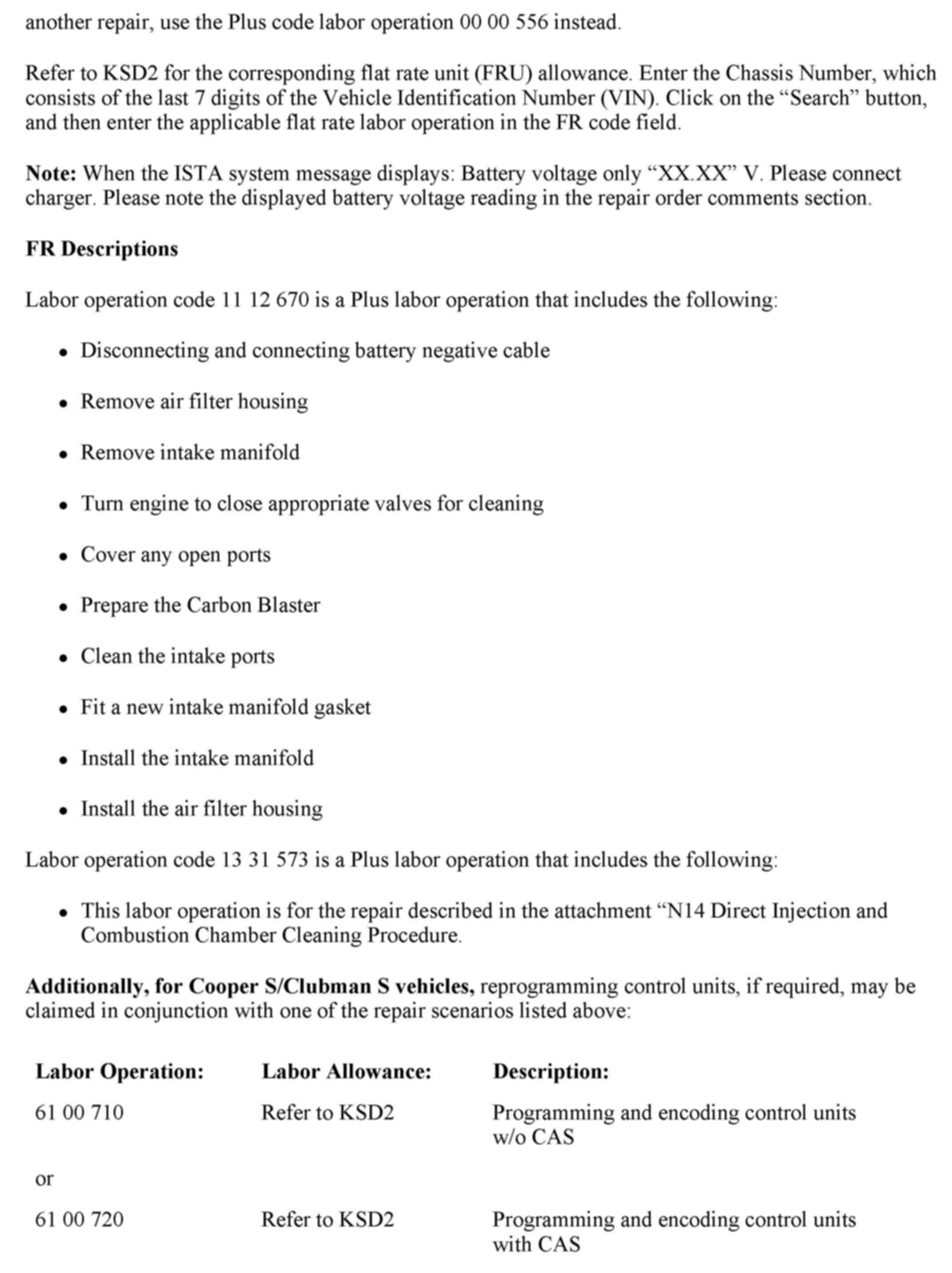 Additionally, MINI USA recommends that the in-rail injection cleaning, service be performed yearly (on a customer-pay basis) on N14 vehicles which currently do not exhibit the negative harmful effects of carbon buildup, to maintain MINIs dynamic performance and maximize fuel economy.