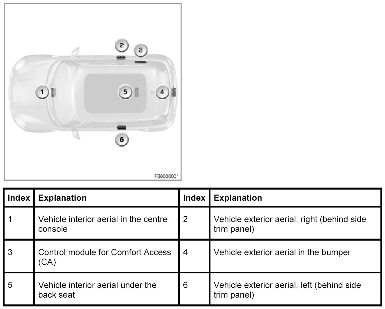 - All identification sensors send a radio signal via the FBD receiver to the CAS control module (high-frequency radio signal, depending on the country e.g. 868 MHz).