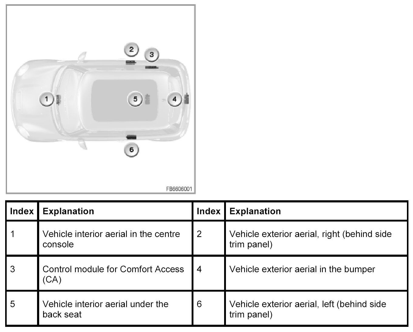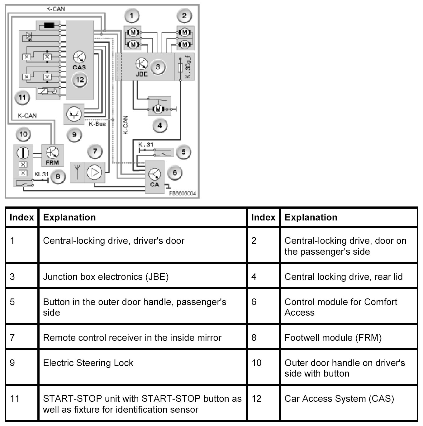 - All identification sensors send a radio signal via the FBD receiver to the CAS control module (high-frequency radio signal, depending on the country e.g. 868 MHz).