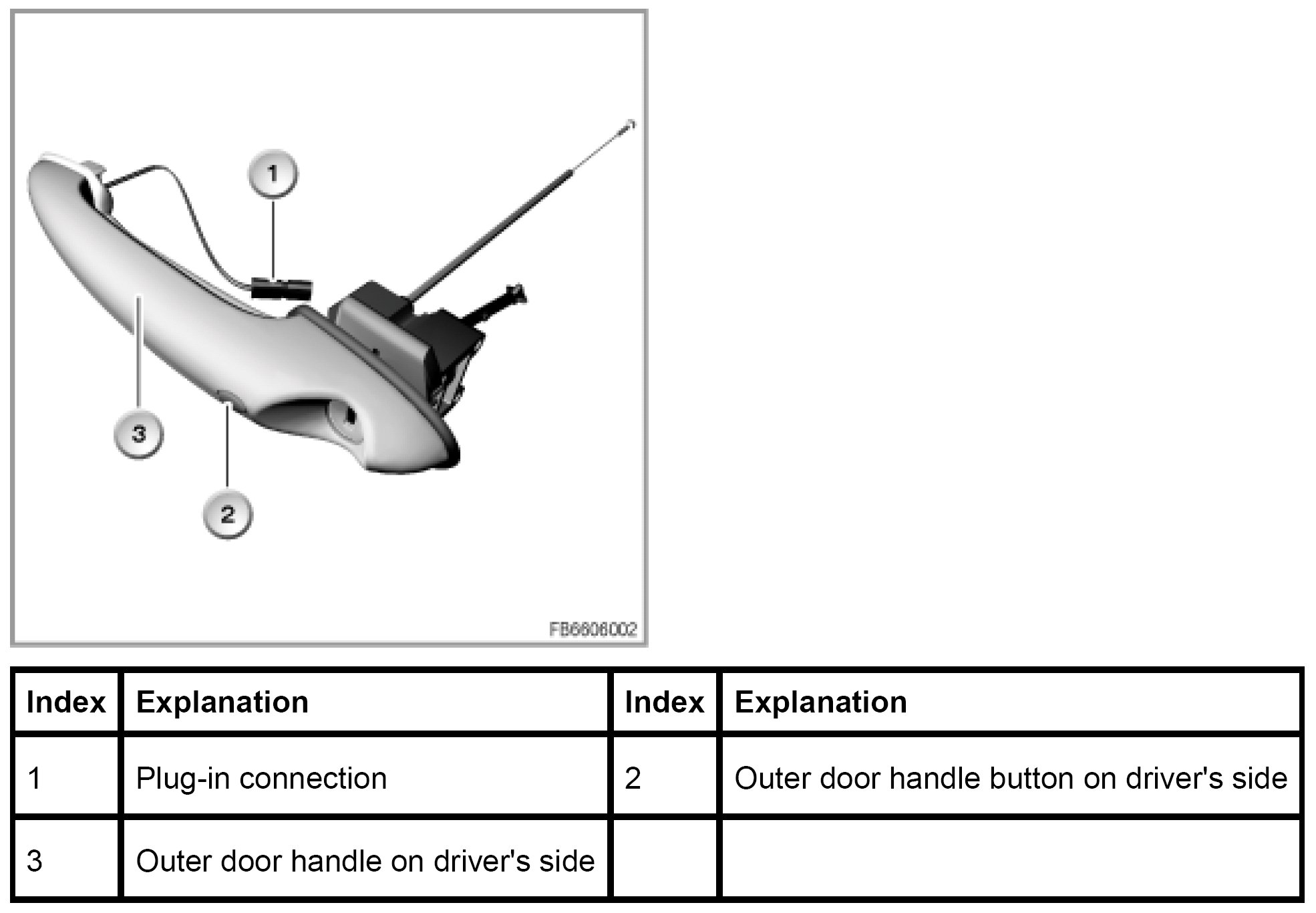 The buttons for the outer door handle are connected to the control module for Comfort Access. Pressing the button starts an authentication (= check that identification sensor is authorized for access).