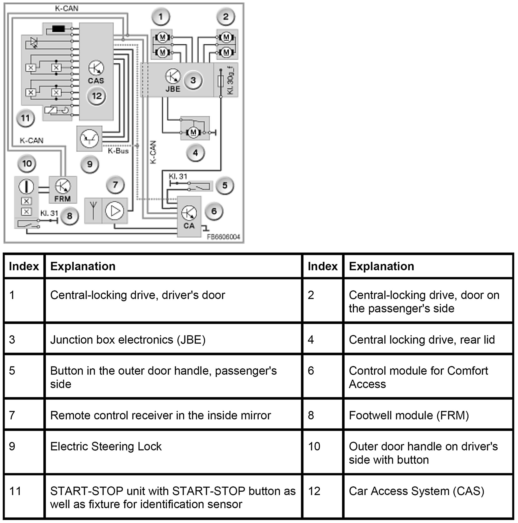 by the CAS control module. The CAS control module is connected via the K-Bus (sub-bus) with: