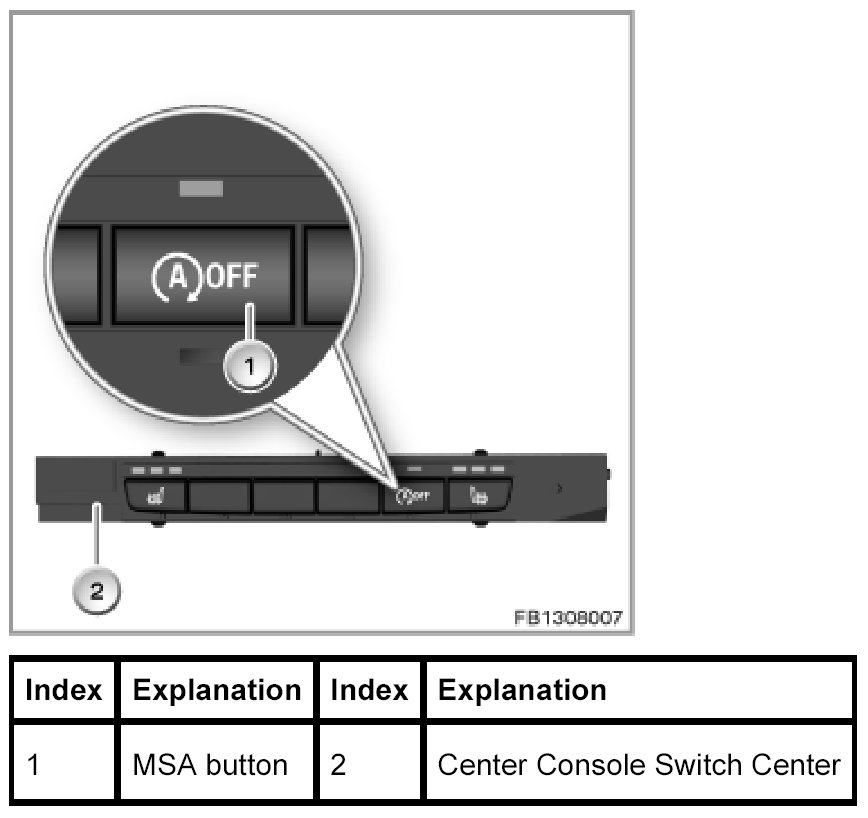 The MSA button (MSA OFF) on the centre console switch cluster can be used to deactivate the MSA function. With each terminal change "Terminal 15 On" or repeated pressing of the MSA button, the MSA is reactivated.