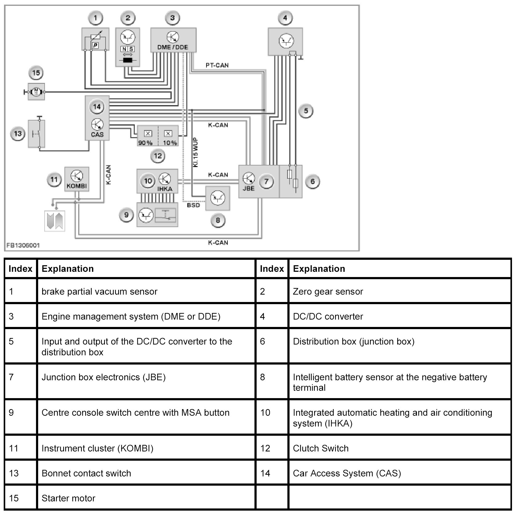 The MSA function is located in the engine electronics (DME or DDE). Various information from the bus systems is used for the MSA. New components are also necessary. The following components for the MSA are described: