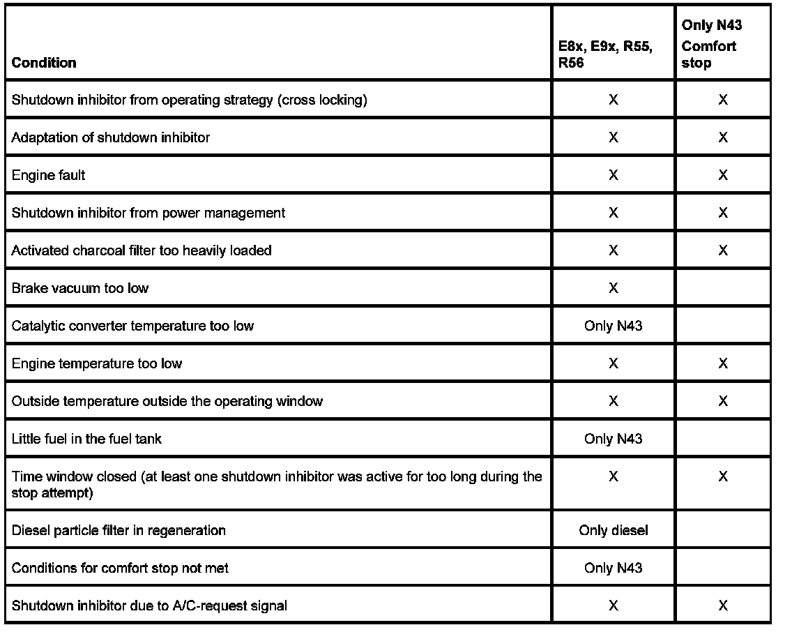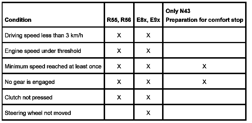 Low filling during comfort stop prevents the engine from "shaking". The comfort stop function empties the intake air collector (engine runs for 1 second longer).