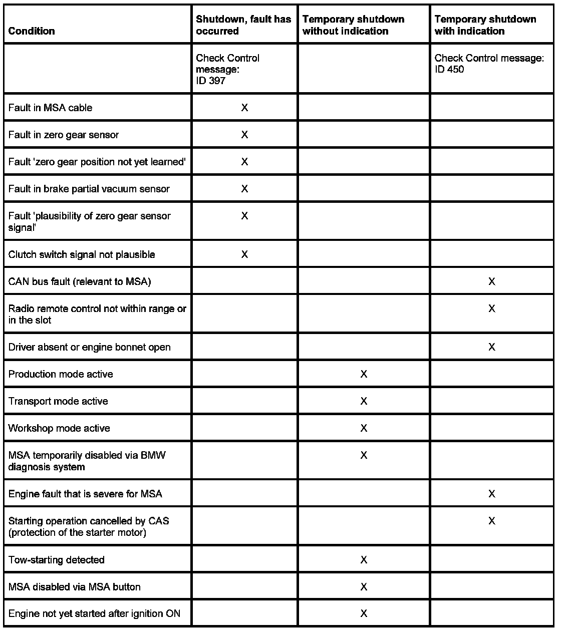 Stored faults for the MSA deactivate the automatic engine start-stop.
