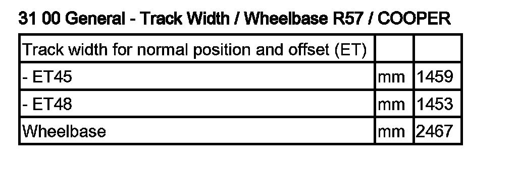General - Track Width/Wheelbase R57 COOPER