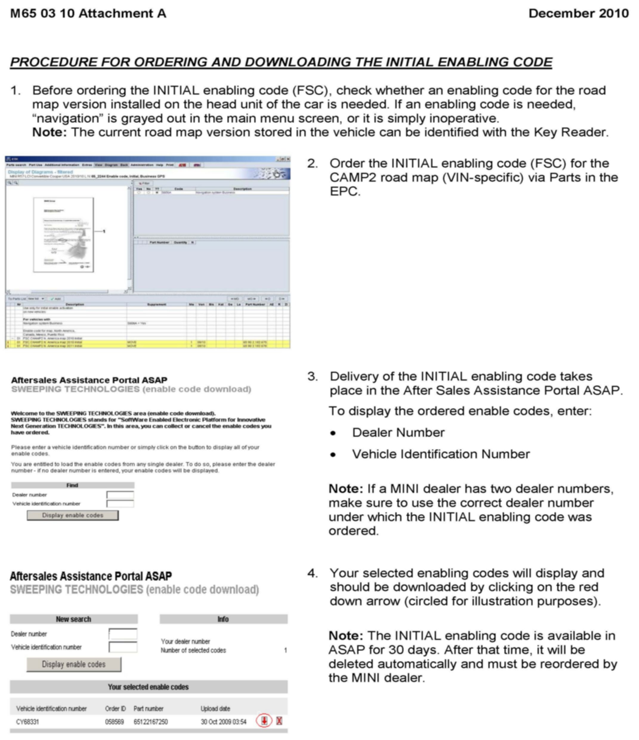 If a MINI dealer has two dealer numbers, when retrieving the enabling code, be sure to use the same dealer number that your Parts department used when the original order was placed.