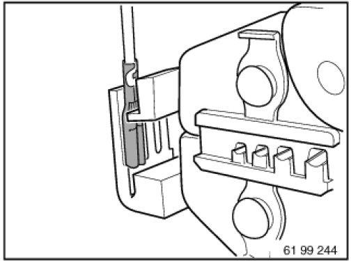 Special tool 61 9 041 (hand crimping tool) in conjunction with 61 9 042 (matrix) are used for pushing contact sleeves onto fan connectors.