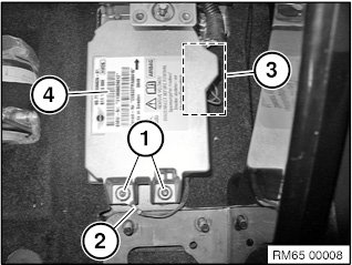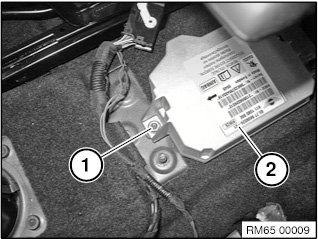 Unlock plug connection (3) at airbag control unit (4) and disconnect.
