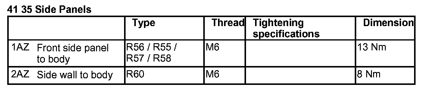 Tightening torque 41 35 1AZ.