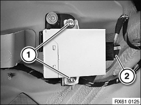 Disconnect plug connection (2) and remove control unit for folding exterior mirror.