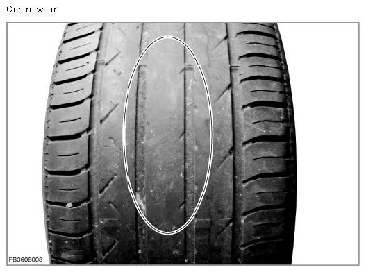 Tyres wear out during their use. The wear depends on the driving style. Additional influencing factors include the road condition, the design and layout of the road, the average ambient temperature and the drive concept of the vehicle. Tyres of powerful vehicles that are frequently driven at higher speeds predominantly wear out in the tyre centre. The wear is caused by the slight enlargement of the tyre diameter in the middle of the tyre tread which is caused by the high centrifugal forces involved.
