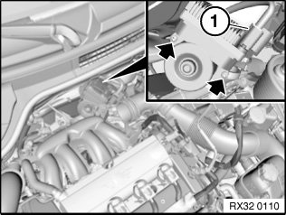 Unlock plug connection (1) in engine compartment and disconnect.