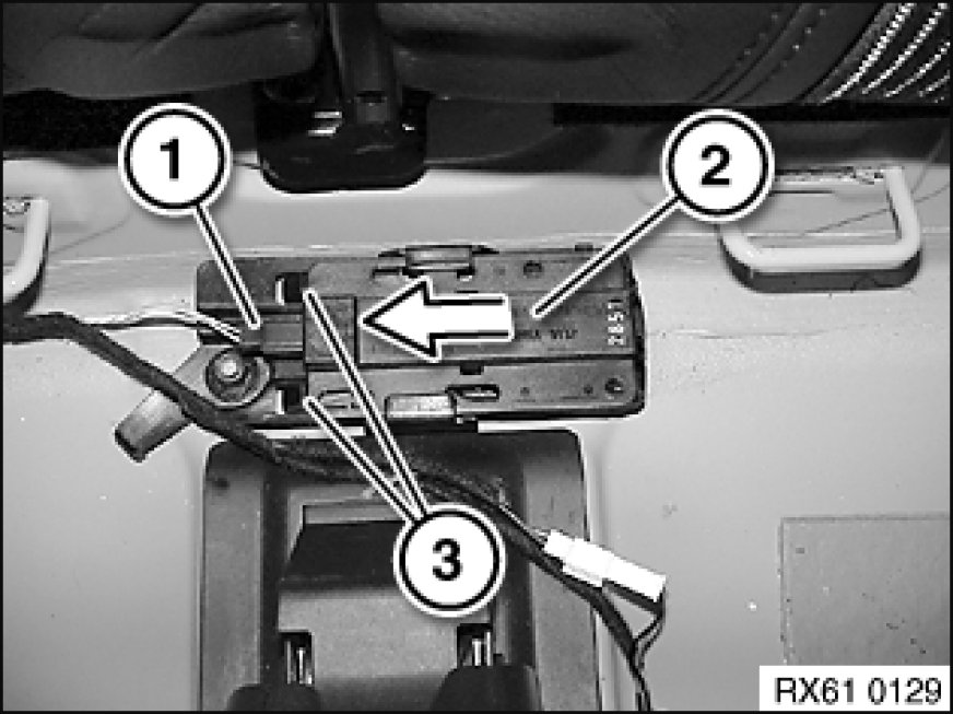 Guide interior aerial for Comfort Access System (2) in direction of arrow out of holder.