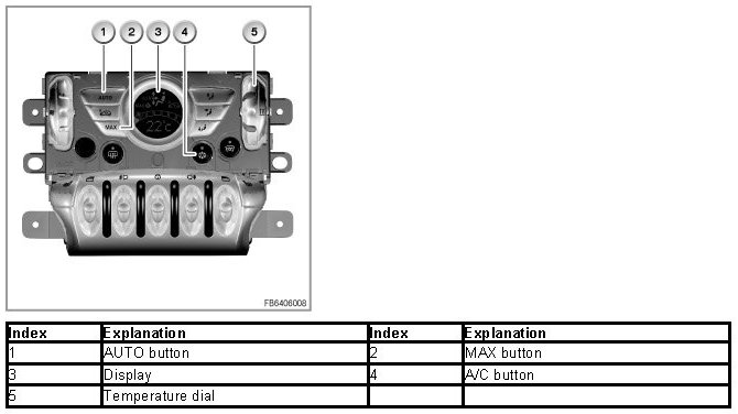 Pressing the MAX button sets the maximum cooling output. The air-conditioning function is switched on (if not yet active). The blower output is maximized. In the display, the temperature display is switched to "LO". "MAX *" is displayed. After deactivating of the MAX function, a calibration to the normal operating mode is carried out.
