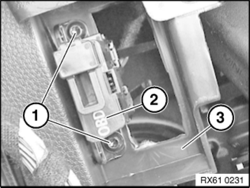 Remove OBD-II socket (2) from instrument panel lower section (3).