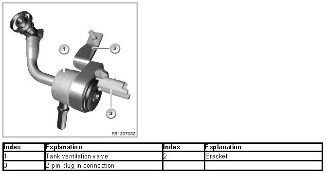 The tank vent valve is closed when in a flow-free state. This means that with the engine at a standstill no fuel vapors from the activated carbon filter enter the intake pipe.