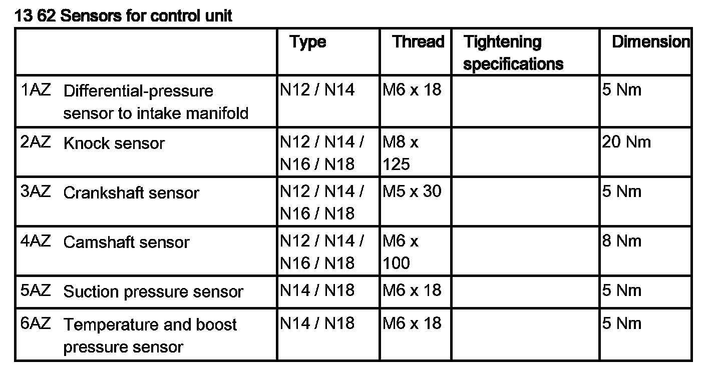 Tightening torque 13 62 2AZ.