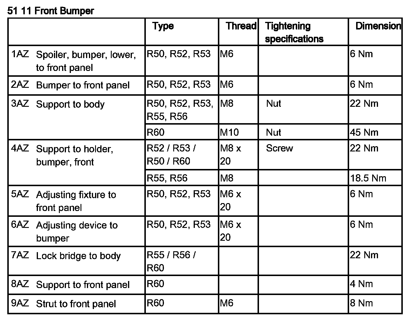Tightening torque 51 11 4AZ