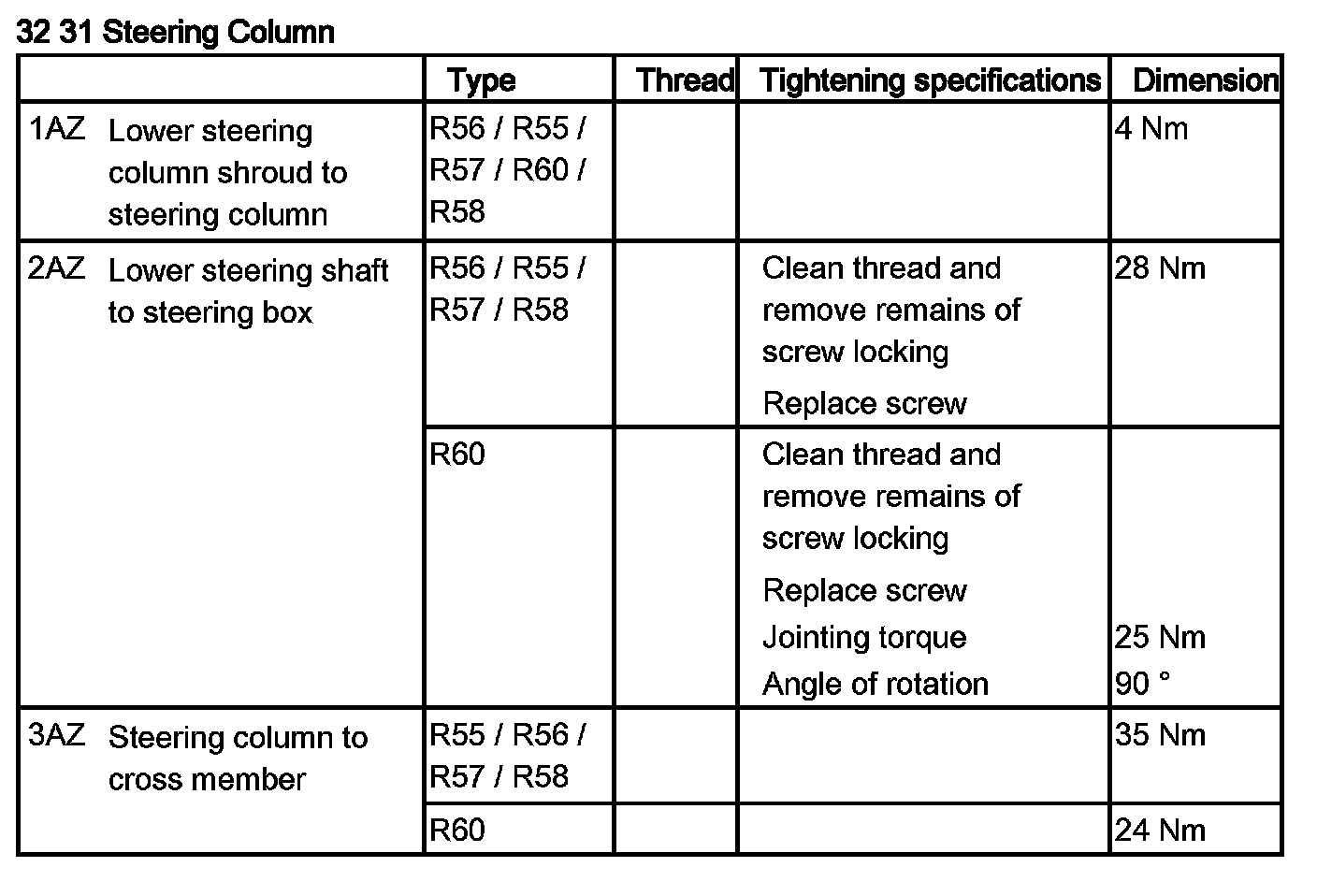 Tightening torque 32 31 2AZ