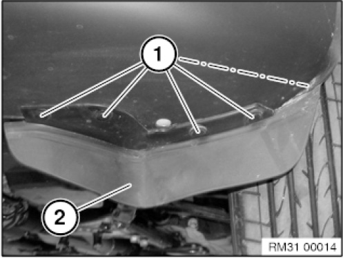 - Partially remove front left and right wheel arch covers at bottom.