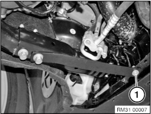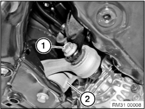 Undo bolt (1) at anti-roll bar link (2).