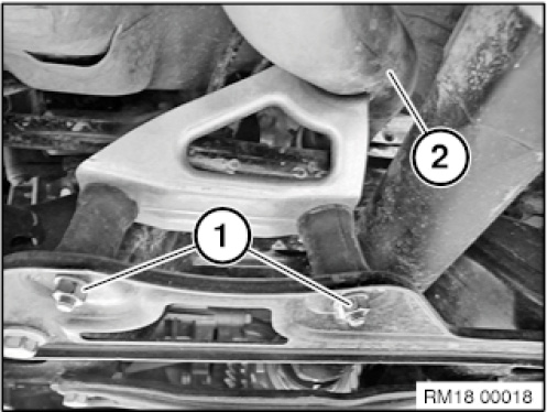 Release nuts (1) at front pipe (2).