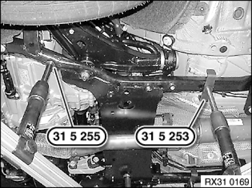 Align special tools 31 5 255 and 31 5 253 to front axle support.