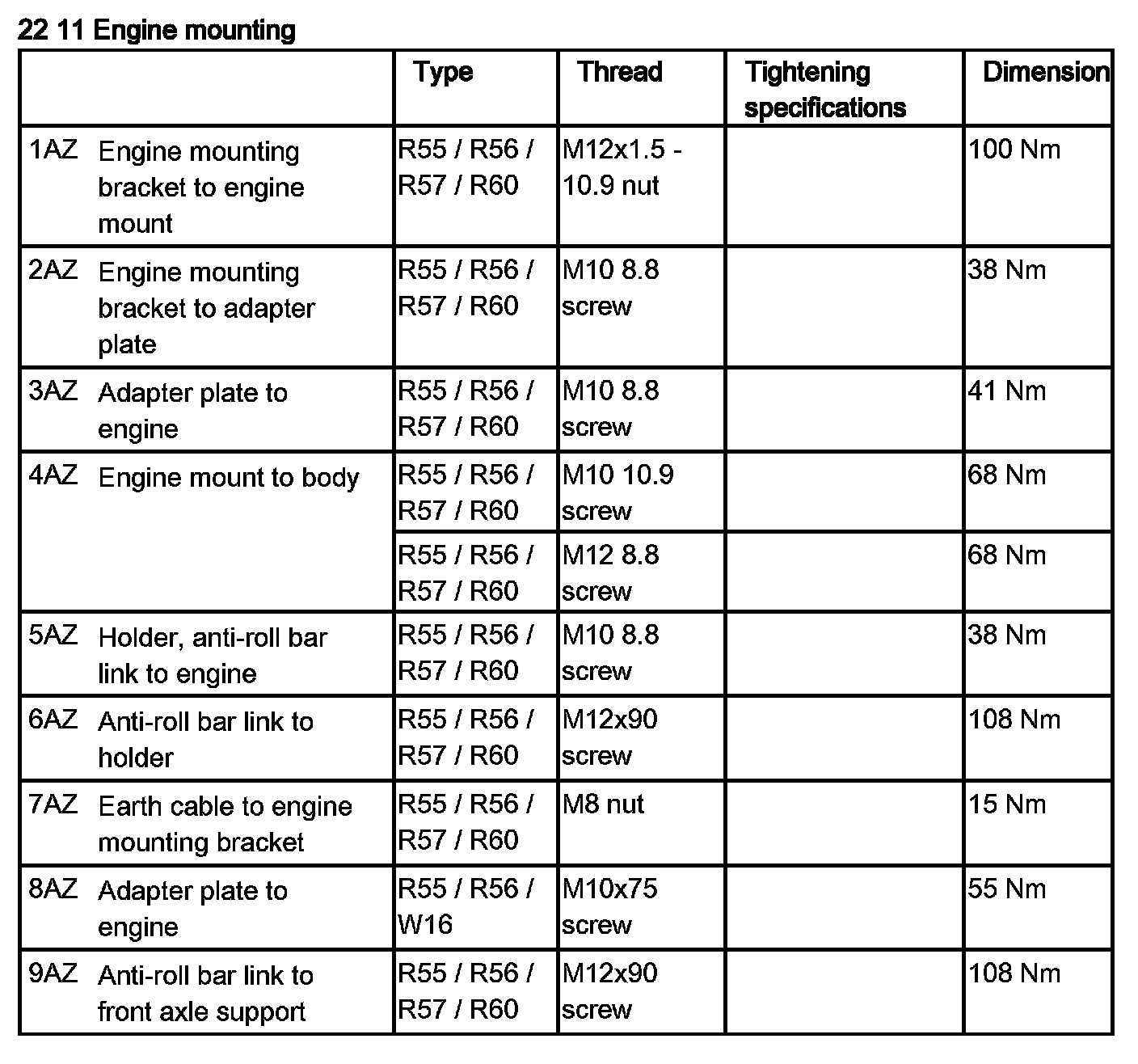 Tightening torque 22 11 6AZ