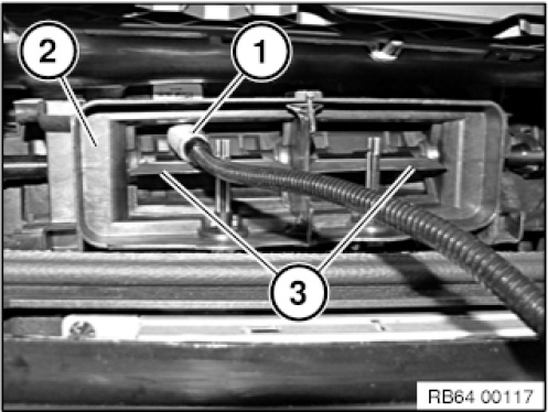 Position sensor head (1) in air duct of middle fresh air grille (2) as illustrated and move slowly from inside to outside above and below air flap (3). Carry out this operation on the left and right fresh air grilles.