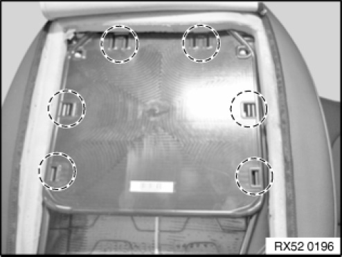 Lever out welt from backrest cover in marked area.