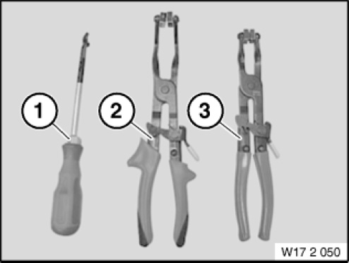 Set of special tools 17 2 050 for dismantling and installing the coolant hose spring straps.