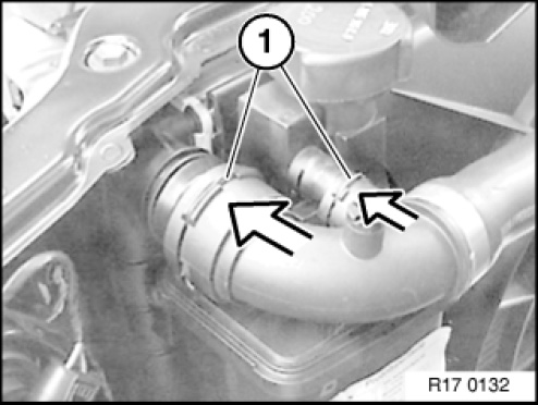 IMPORTANT: Make sure without fail that coolant hoses are correctly routed. Risk of damage due to sharp edges or chafing.