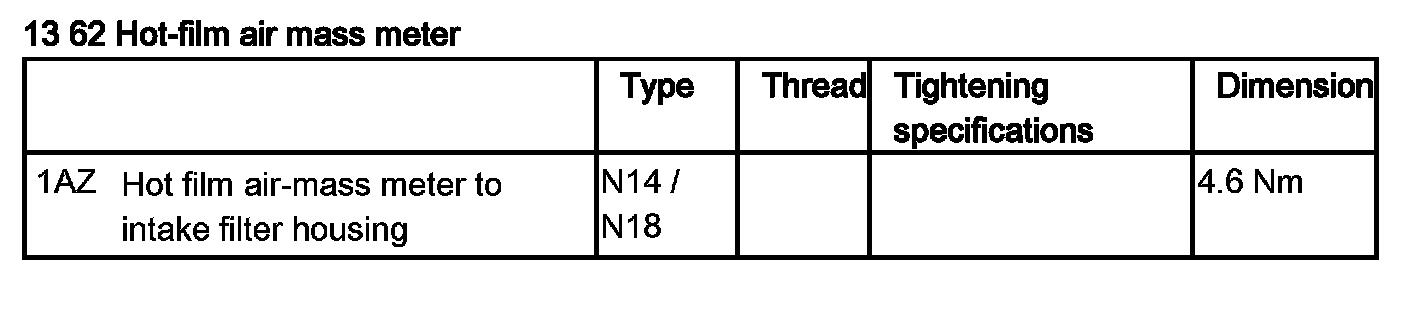 Tightening torque 13 62 1AZ .