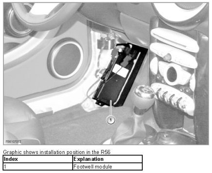 The footwell module processes the signals from the doors and controls the lighting. The footwell module is also the interface to the instrument panel. Depending on the equipment version, the footwell module picks up the following signals: