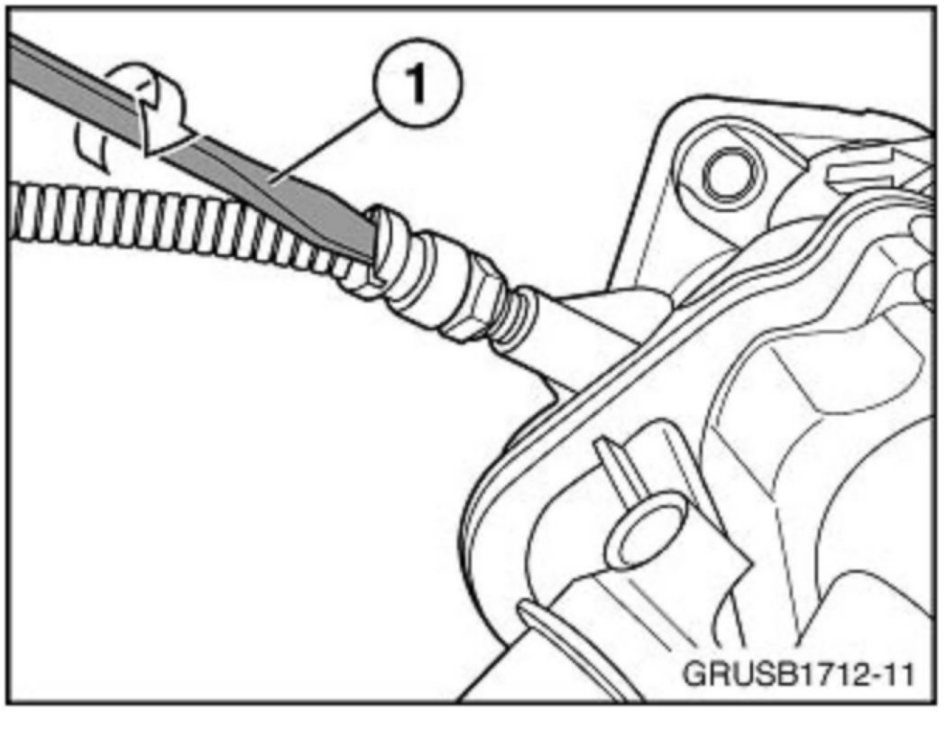 The back of the temperature sensor is slotted to accept a bladed screwdriver (1). Install the sensor into the bleeder screw hole, and torque to 2Nm.