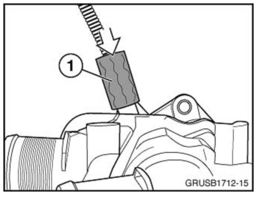 Remove the bleeder screw (1) from the thermostat. This screw will not be reused.
