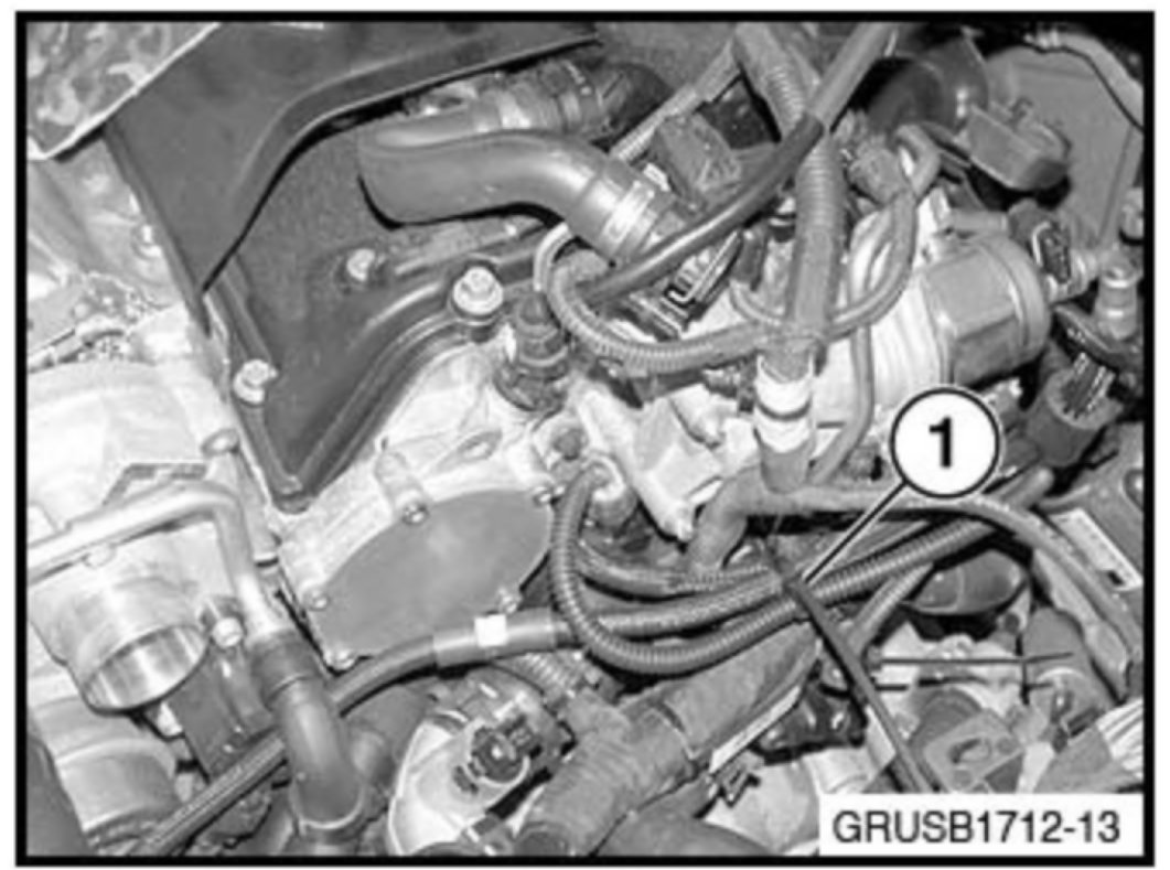 Secure the connector (1) with a cable tie to the engine wiring harness.