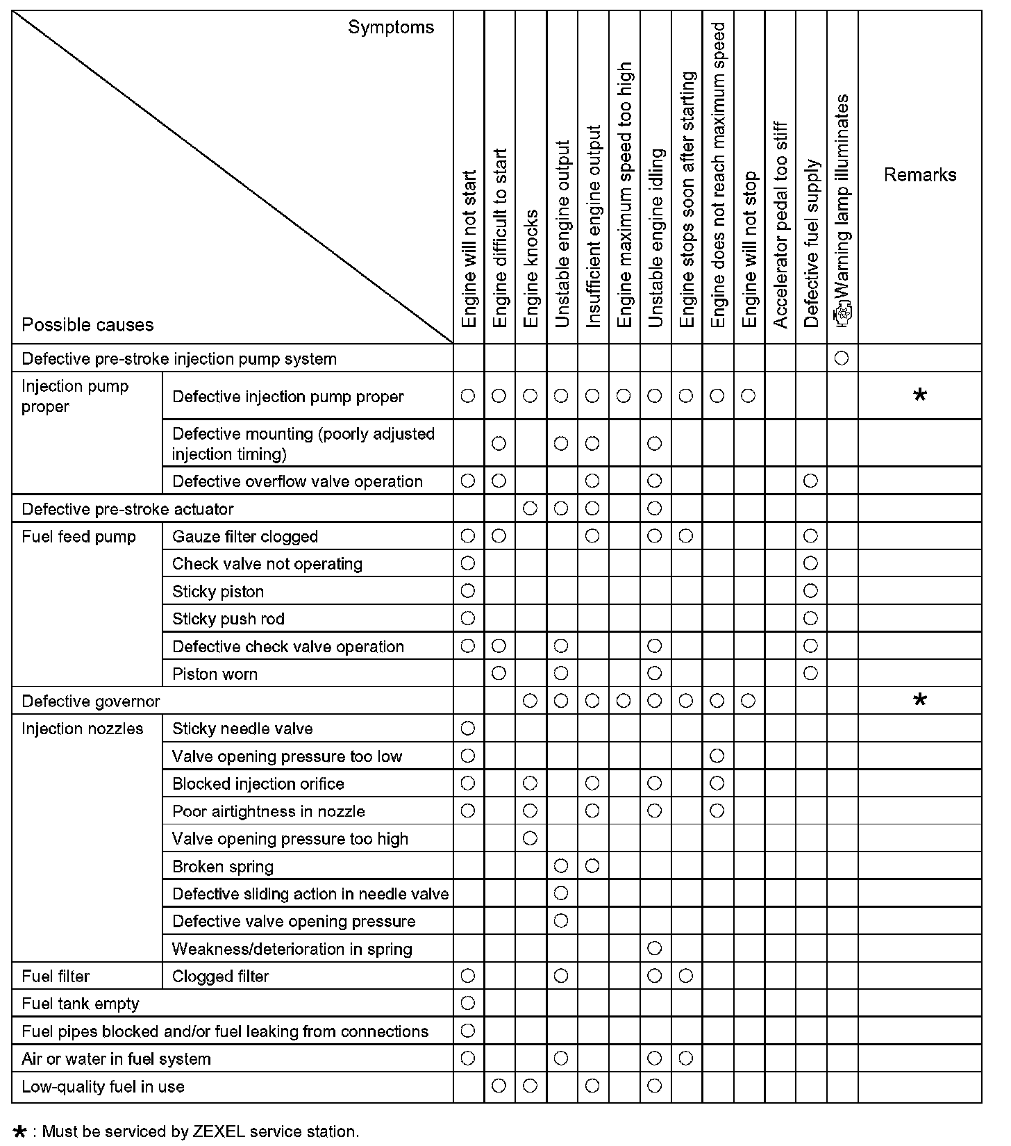 Inspection of the electronic governor and pre-stroke control injection pump system can be performed most effectively using an MUT-II. Types of system inspection can, in accordance with fault systems and diagnosis codes, be broadly classified as follows: