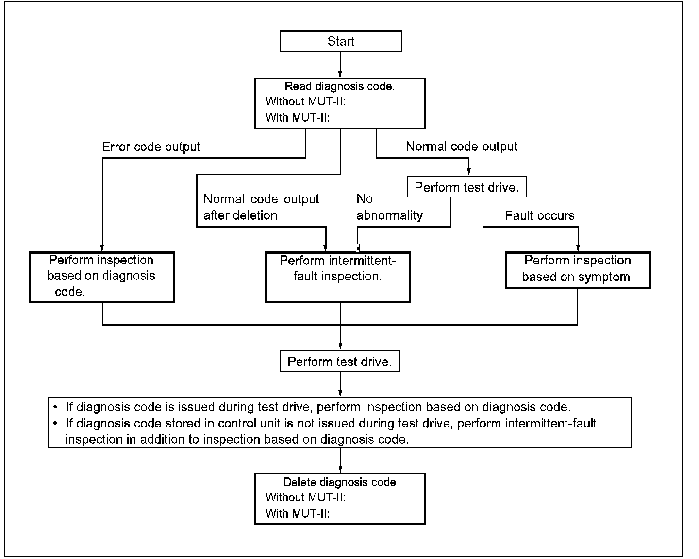 - The memorized fault location can be read as a diagnosis code using an MUT-II or the diagnosis switch.