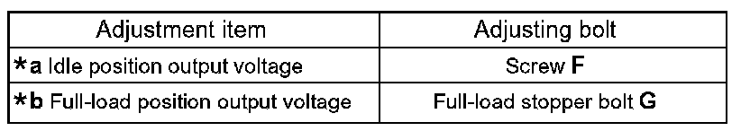 - If the measured output voltage at accelerator switch activating point *c deviates from the standard value, replace accelerator pedal position sensor 2.