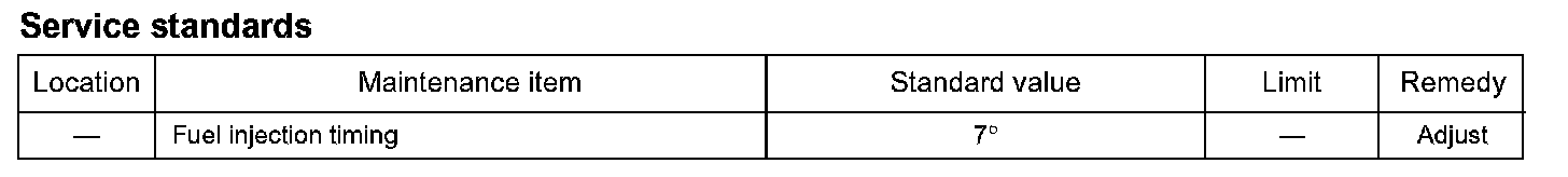 Inspection and Adjustment of Fuel Injection TimingService standards
