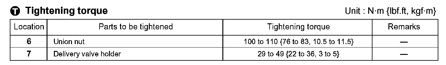 - After removing these parts, install delivery valve holder 7.