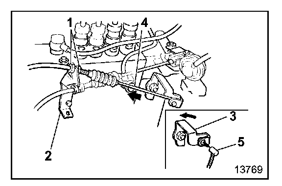 - Remove cable end 5 of engine stop cable 4.