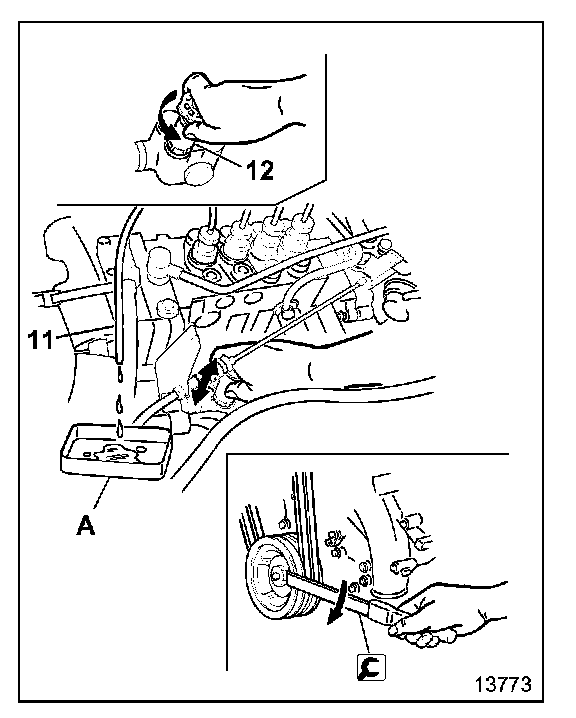 - Mount extra injection pipe 11 on NO.1 cylinder. Direct the free end of the pipe downwards so that the fuel discharge can be clearly observed.
