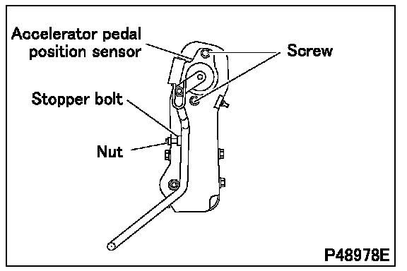 - To adjust the output voltage for the idling position A, loosen the screws and move the accelerator pedal position sensor. Tighten the screws after making the adjustment.