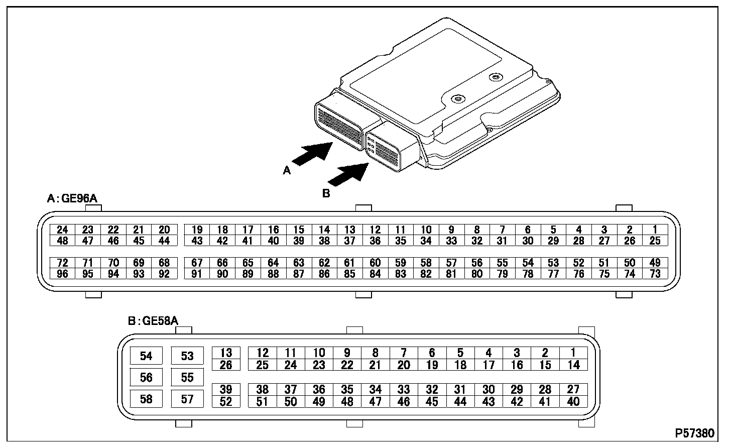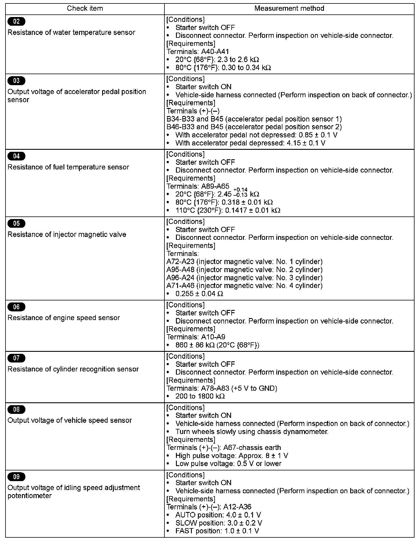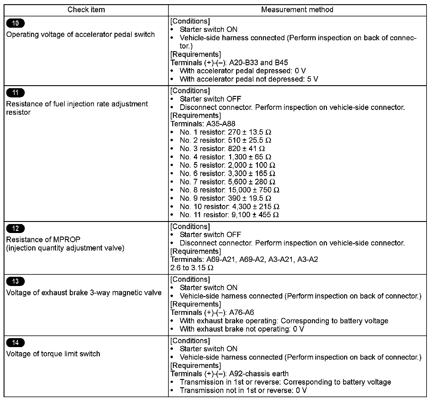- Do not touch any terminal except those specified for the inspection. Be particularly careful not to cause short circuits between terminals using the tester probes.